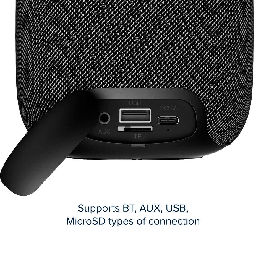 The new Canyon portable wireless speaker is ready to blast your all-time favorites. Rated at 10 Watts, it is a travel-sized powerhouse. Rounded shapes, compact size, and a neat little handle make it a perfect companion for a trip or a countryside party with your friends! The RGB backlight on top will look awesome after dark, and you can easily find the playback control buttons there. Enjoy up to 3 hours of music while being connected with Bluetooth, and once the battery dies - just plug it in with about any Type-C cable. Besides, you can use AUX, USB, or a MicroSD memory card as your media source. We truly recommend using Bluetooth – what’s better than switching playlists on the fly? As far as 10 meters from the speaker, the connection remains stable. Get your BSP-8 speaker in red, gray, or black – your adventures need to get a soundtrack.